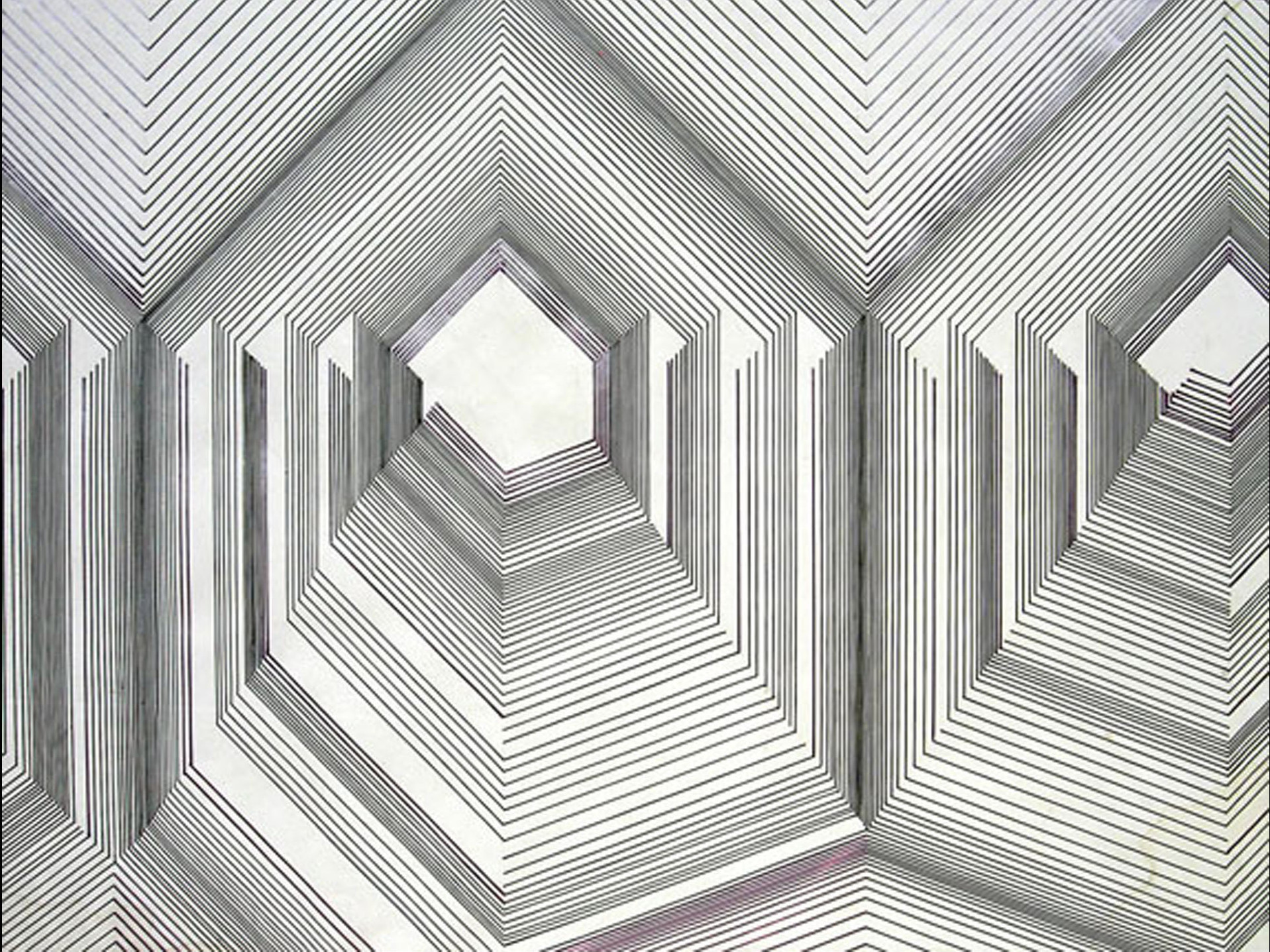 During 1980’s I thought - is it possible to create space, dark & light tones with the help of just straight lines? I experimented and found that parallel lines placed with increasing or decreasing intervals can help to achieve the desired results. Each line depending upon another line postulate, further helped me to evolve these series of works.